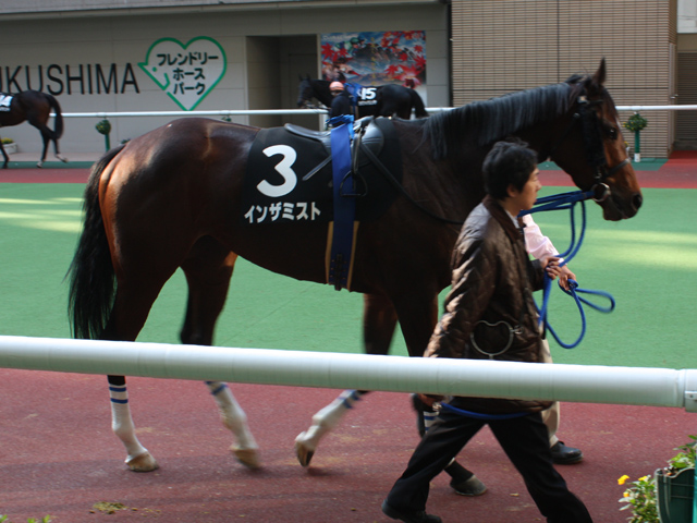 「霧の中で」。乳色の霧に、緑は瑞々しさを増し、お日様のもとでいっそうつややかに生き生きと輝く。本馬もやがて太陽の下で光を放つべく、霧の中で着実に力をつける。母の名前より連想して命名。 |